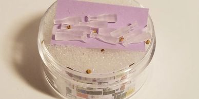 1 each of lavender, orange, rosy pink, english tea, denim and 3 clear, corks and labels.